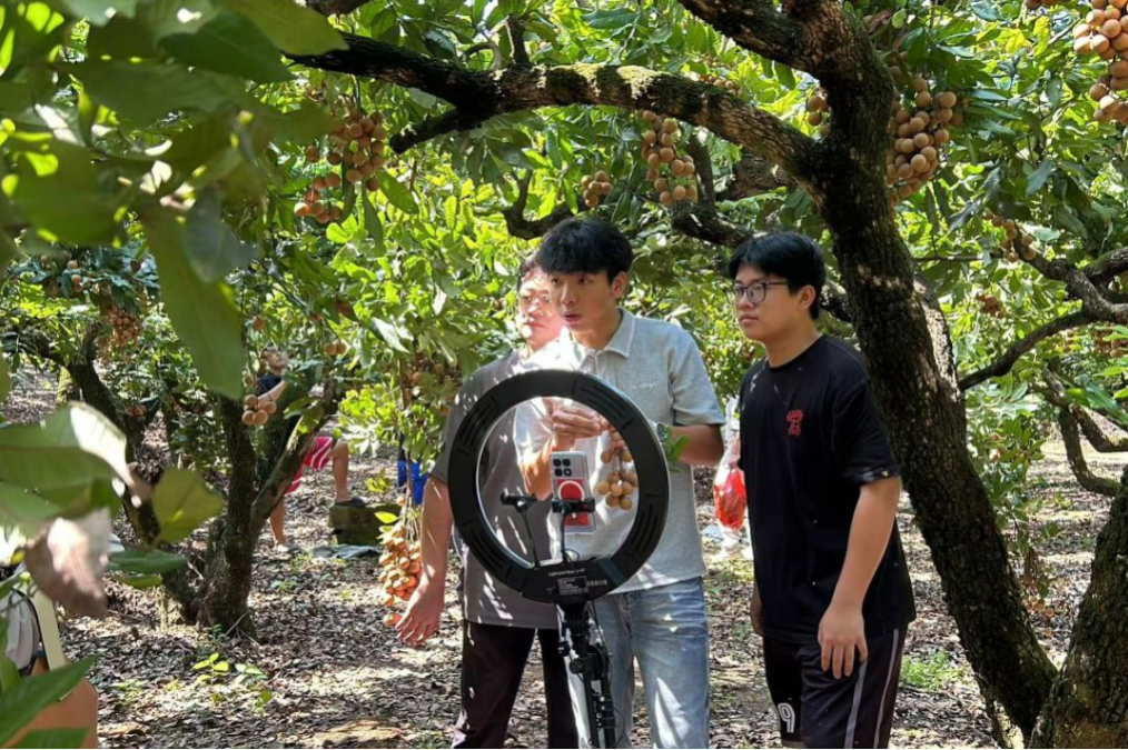 “今年龙眼收成不错,但天太热,采摘人手不够,加上销路没打开,眼看着果子要烂在树上,我们心里急得慌!”店仔村农户陈阿伯的话语道出了当地果农的困境。受持续高温天气影响,当地龙眼成熟期集中,采摘劳动力短缺,同时传统销售渠道受限,近千斤龙眼面临滞销风险。厦门团市委在调研中了解到这一情况后,火速联动厦门南洋职业学院校团委和经济管理学院分团委,组建起一支由电子商务和网络营销与直播电商教研室教研室教师带队、20名学生参与的助农志愿服务队,一场“抢收+直播”的助农行动紧急展开。